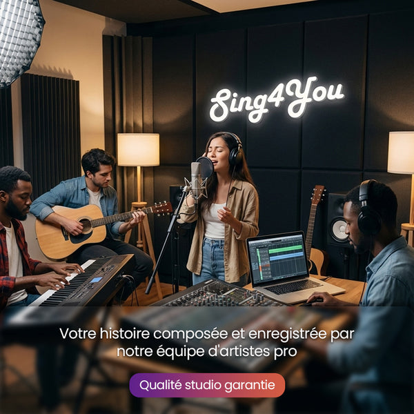 Un compositeur crée une chanson à partir de votre histoire, adaptée à votre style et à l’occasion.